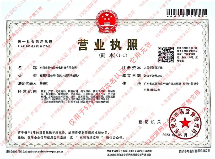 主营:研发、产销:光电材料、研磨材料、高分子材料、胶粘制品、包装材料、橡塑制品、皮革制品、五金制品、电子产品、半导体辅料,芯片抛光技术开发、设计、技术咨询,供应链管理,货物或技术进出口。