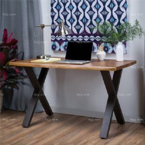 十叉矮易工台桌 桂林复易铁柱桌 钦州实木金属家具