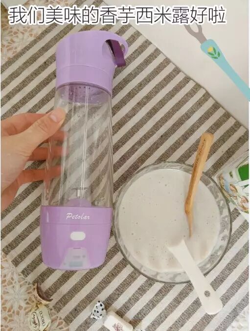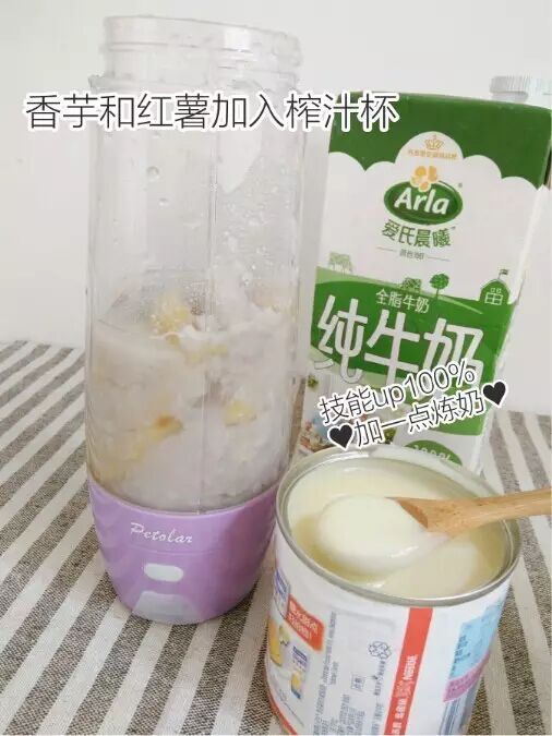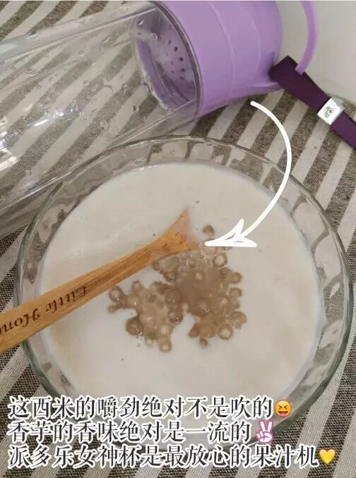 材料:半块香芋、一小把西米、 红薯、纯牛奶、炼奶、冰糖 步骤:把香芋和红薯切片蒸熟, 西米露加水煮开,加热牛奶。 向女神榨汁杯加入 绵绵软软的香芋和红薯, 再倒入牛奶和炼奶, 最后70秒启动。 榨好后,倒入碗里, 先后加入西米露和冰糖,搅拌。 好啦,美味的芋头西米露好啦! ps:放入冰箱内冰冻一会,口感会更好哦! 这么简单的做法,赶紧get起来。 微信咨询:ppvip559