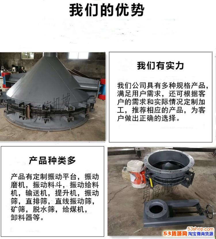 规格齐全 支持定制 锥形料仓破拱装置活化料斗是一种安装在料仓下部,l77l99582l9用于破拱和均匀给料的设备。活化料斗接通电源后,振动电机起振,产生的激振力使给料斗下体在水平方向产生强烈振动。此振动通过锥面或球面活化器将水平激振力分解为法向力和切向力,法向力呈放射状传递到物料深处,切向力使物料受剪,从而消除仓内物料的起拱,使物料像流水一样从出料口排出。切断电源,振动电机停振,排料可停止。
